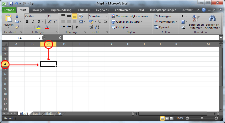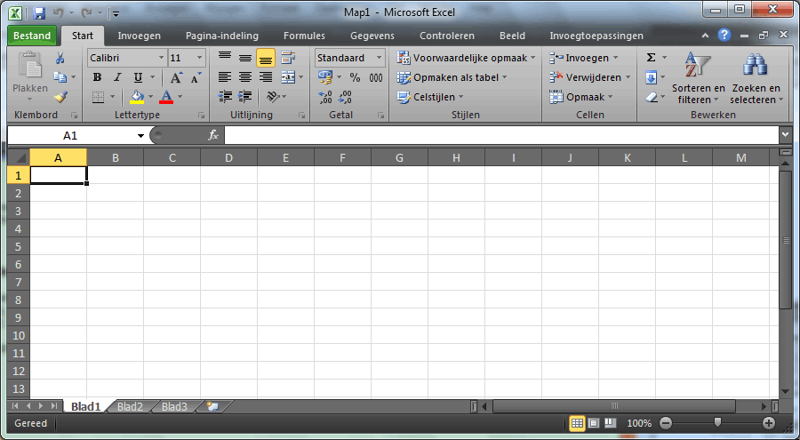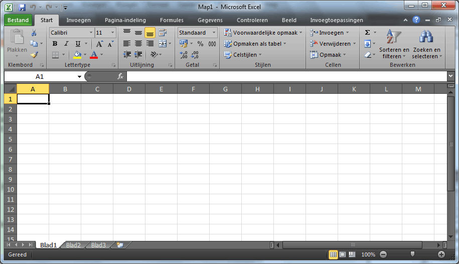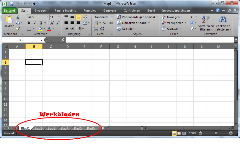 Wanneer je Excel opent, kom je in een nieuw leeg bestand. Zo'n bestand noem je een werkmap. Een werkmap bestaat uit werkbladen. Je kunt zelf bepalen hoeveel werkbladen een werkmap heeft. Onderaan in het venster zie je hoeveel werkbladen er zijn en op welk werkblad je werkt.