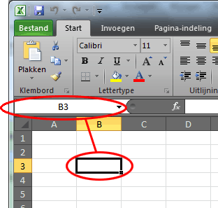 Hoe weet je wat er in een cel staat? Dat kun je zien in de formulebalk. De formulebalk zit boven je werkblad. Je kunt het herkennen door het teken fx.