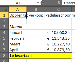 - Zet in cel C8 de formule die deze vier maanden bij elkaar optelt