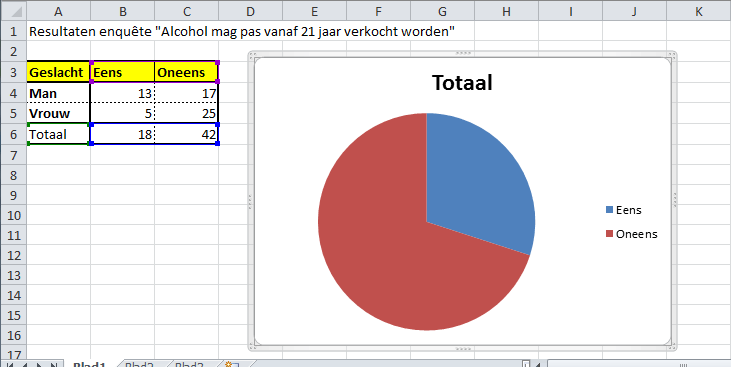 Excel is een met name rekenprogramma. Maar je kunt er ook grafieken mee maken. Als je een enquête gemaakt hebt, kun je de antwoorden in Excel zetten. Je kunt er dan een grafiek van maken, zodat je in één oogopslag kunt zien wat de resultaten zijn. In dit hoofdstuk leer je hoe je grafieken kunt maken. Er zijn veel soorten grafieken. In dit hoofdstuk bekijken we er drie.
